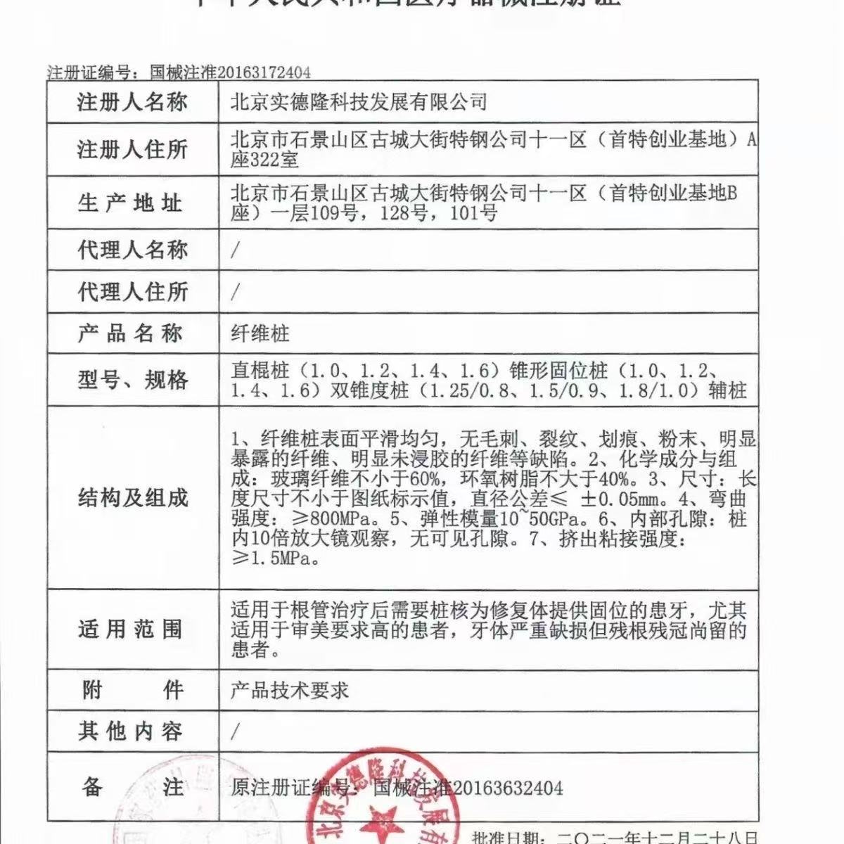 注册证/技术要求编号:国械注准20163172404